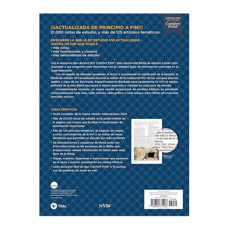 Con el exclusivo tipo de letra NVI Comfort Print®, la reconocida Biblia de estudio a todo color responde a sus preguntas más frecuentes con la cantidad justa de información, colocada en el lugar adecuado.